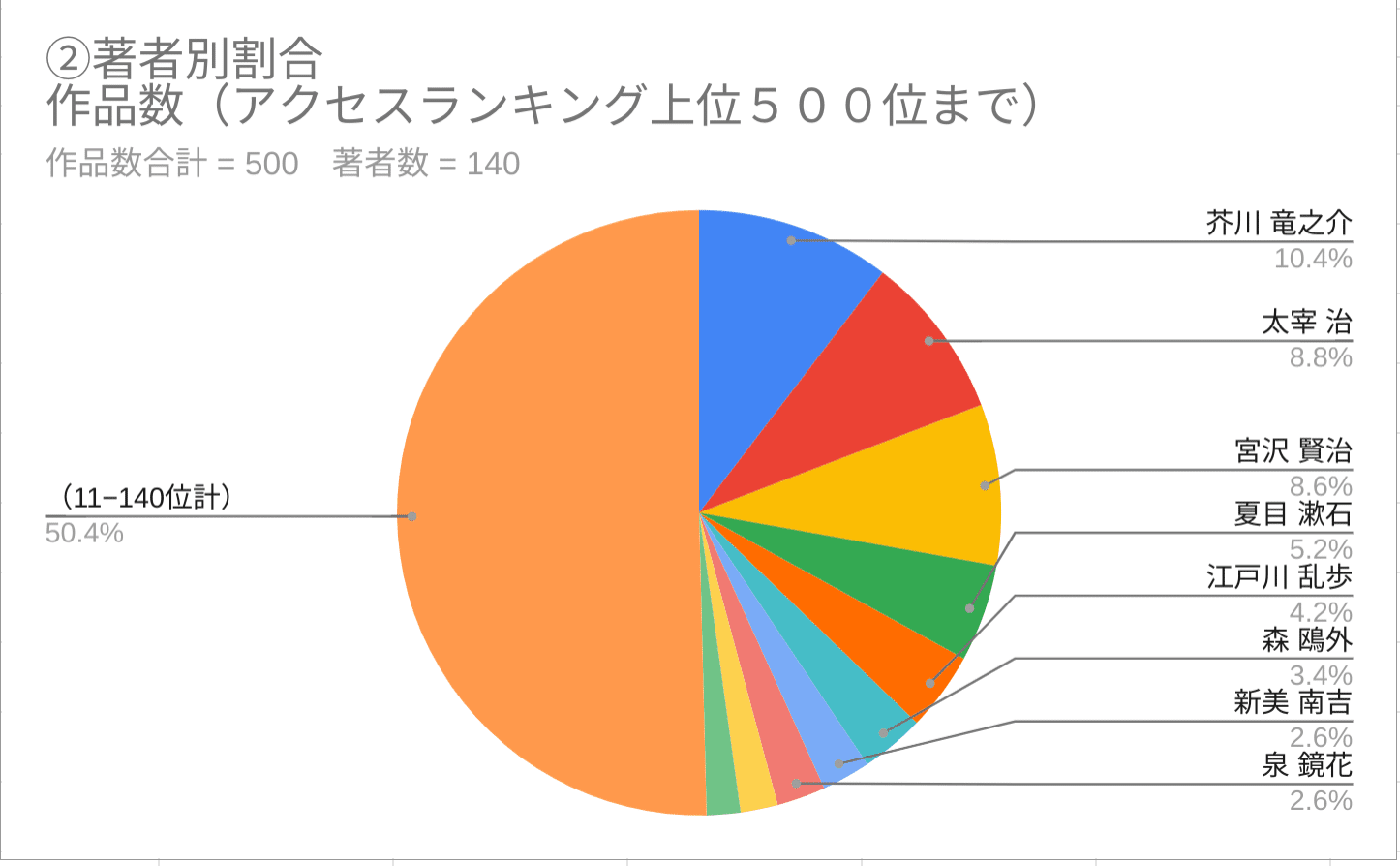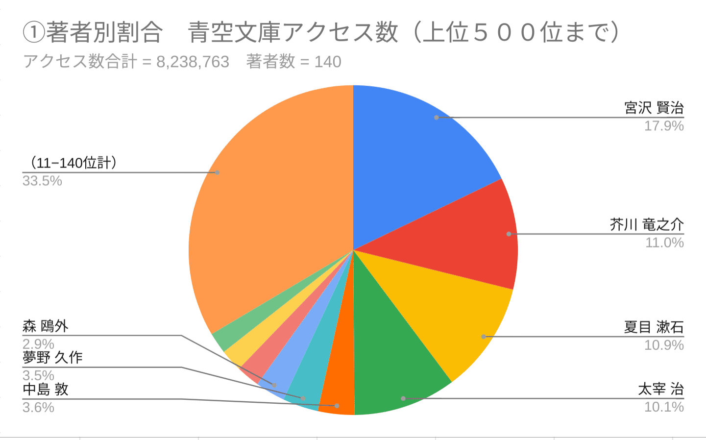 青空文庫XHTML版・2021年通年のアクセスランキングから集計した結果、