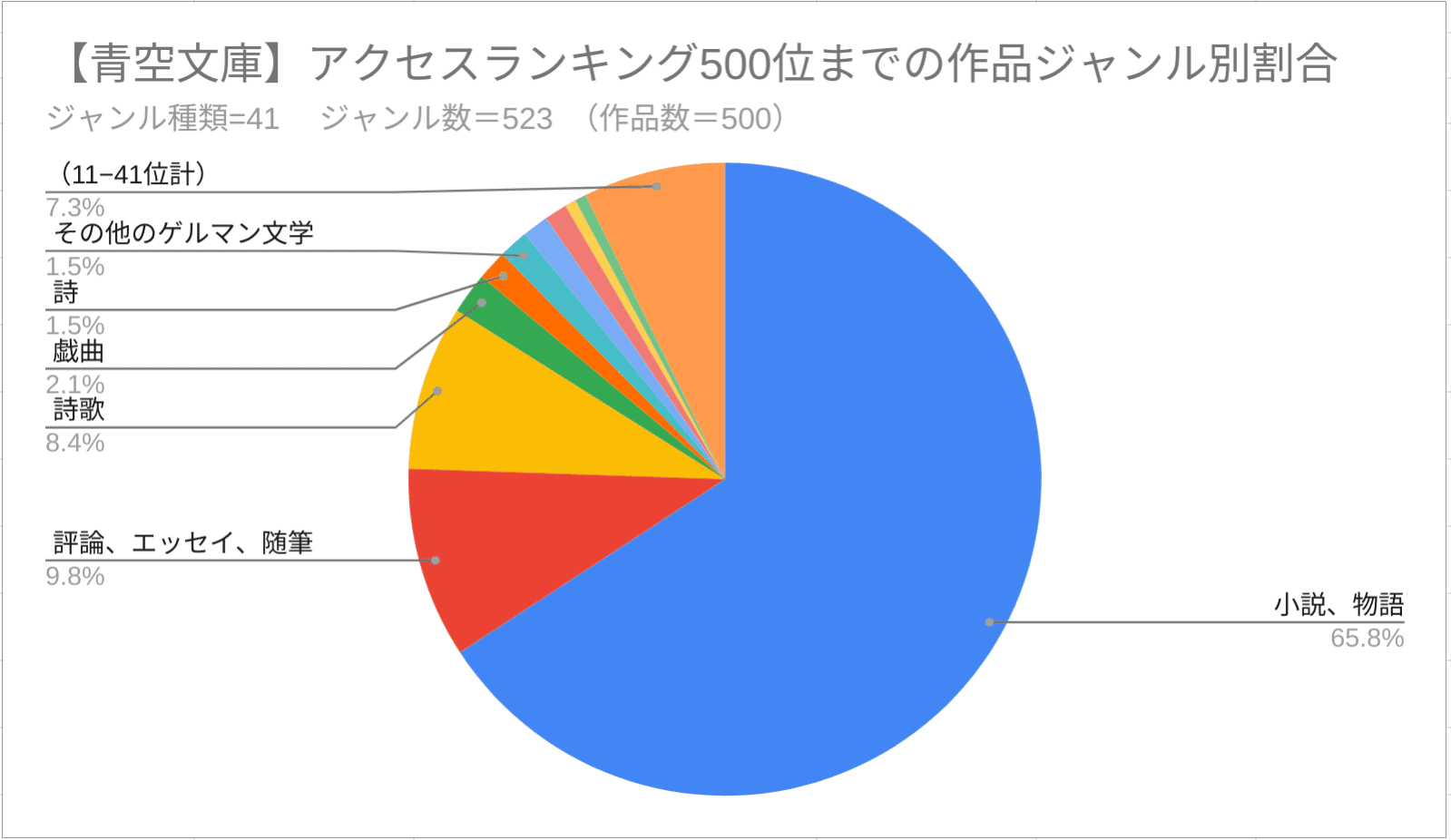 "青空文庫の「小説、物語」(ジャンル名)の中では、